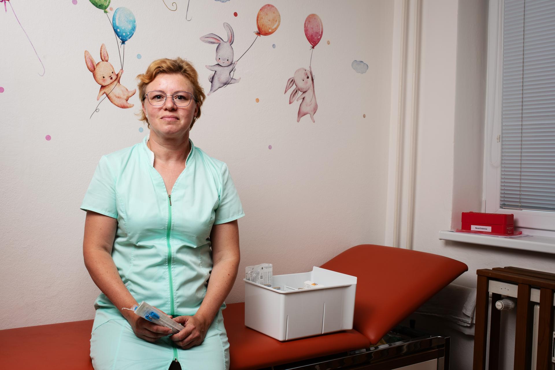 Sme súčasťou mestskej polikliniky, kde sú dve pediatrické ambulancie, dve oftalmologické, ORL, štyri ambulancie všeobecného lekára pre dospelých, dermatologická ambulancia. Náš tím tvorí pani doktorka, ja a v pondelky nám vypomáha ešte jedna sestra. Ona tu predtým pracovala a teraz je na materskej.